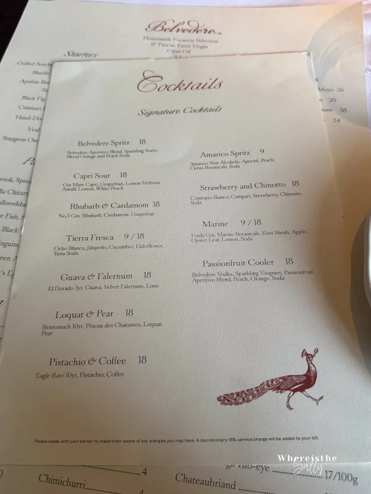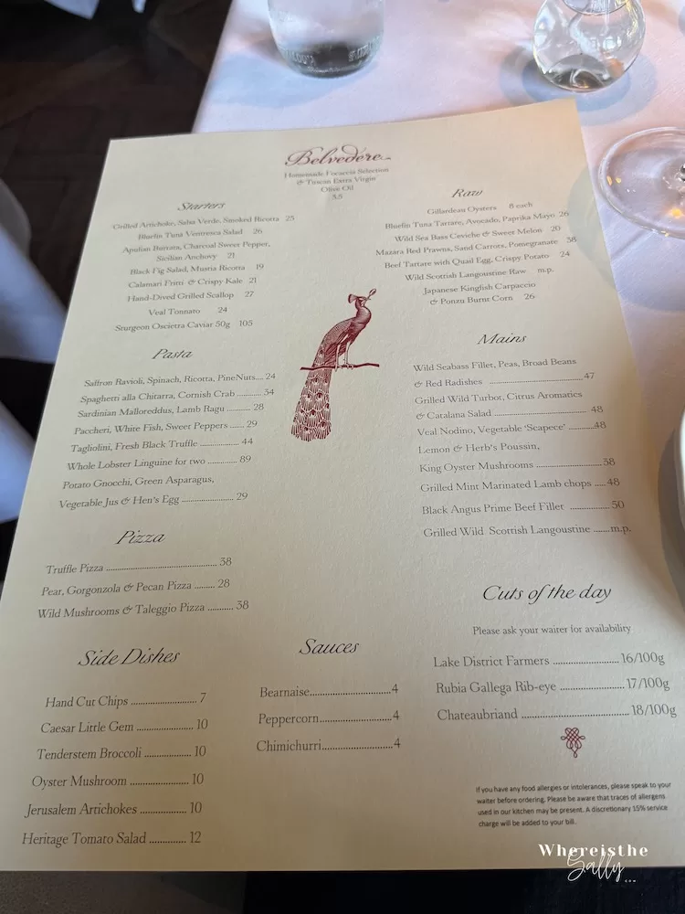 Belvedere A la Carte餐牌