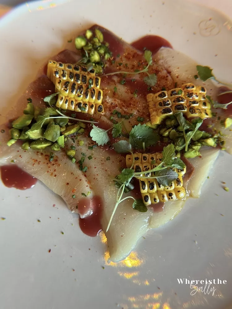 Japanese Kingfish Carpaccio & Ponzu Burnt Corn 26英鎊