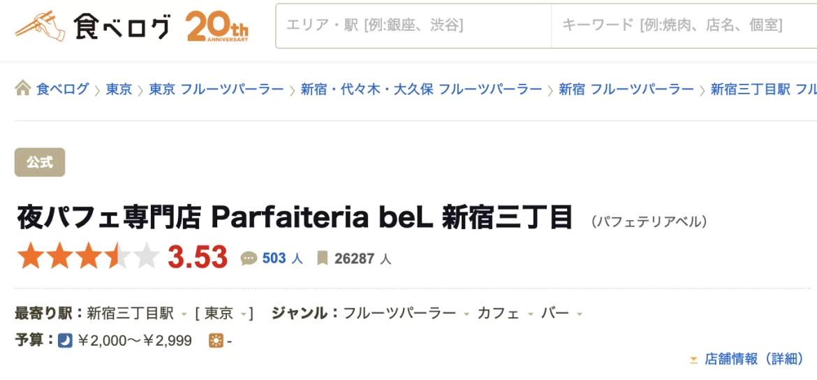 夜芭菲 夜パフェtabelog 3.53